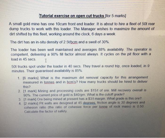 Solved Tutorial Exercise On Open Cut Trucks For 5 Marks A Chegg Com